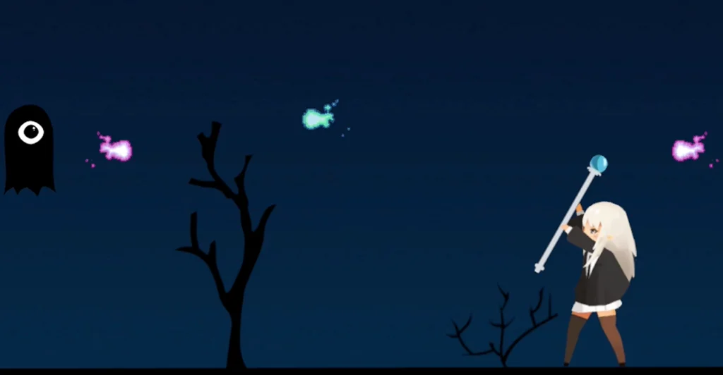 お化け退治の簡単なシューティングゲームです。左右+ジャンプで、弾を避けたり攻撃したりしてお化けを倒しましょう~ブラウザから遊べます